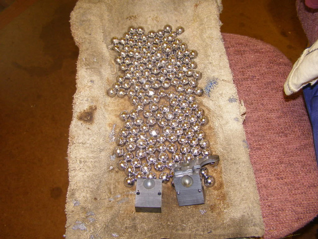 Sometimes if you are casting large cal. balls you will get wrinkeled(sp) wavey balls because you are not pouring the molten lead into the mold fast enough. I have had this happen several times and then opened up the pour hole just slightly to let the lead in faster. Doing so cured the problem for me. I found a drill bit just over sized from the original hole, drilled through then used a countersink to put just a slight edge to the hole from the pour side.