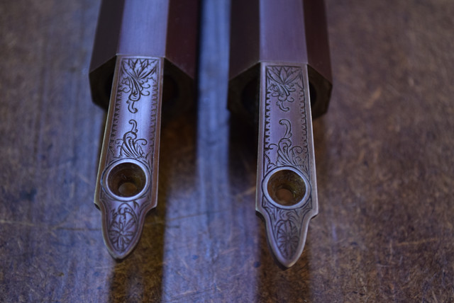 I recently built a Pennsylvania fowler for a buddy down south.  It has an interchangeable .54 cal rifle barrel with it, so there were two tangs to file - the same.  So here's how they finished up.