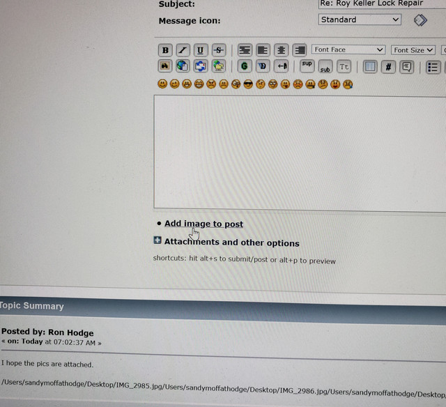 To post a picture, Click the 'Add Image to post' as in the pic below, then follow the instructions.