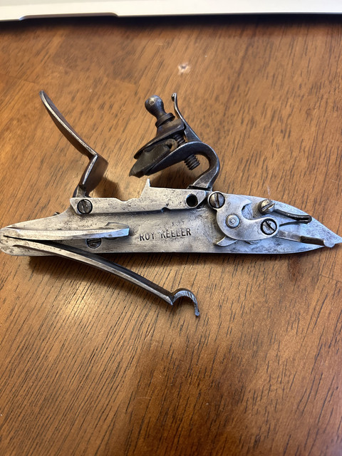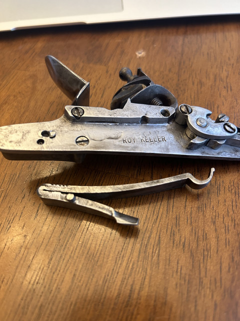 I have a Roy Keller lock, that the mainspring does not fit when in full cock. The top of the arch on the main spring is too large.. Also the length seems to be a little long. The previous owner has three holes in the lock and none line up. Would anyone have advise as to how to buy a spring or new lock. the lock is 5" x 15/16" with a tapered tail. thanks