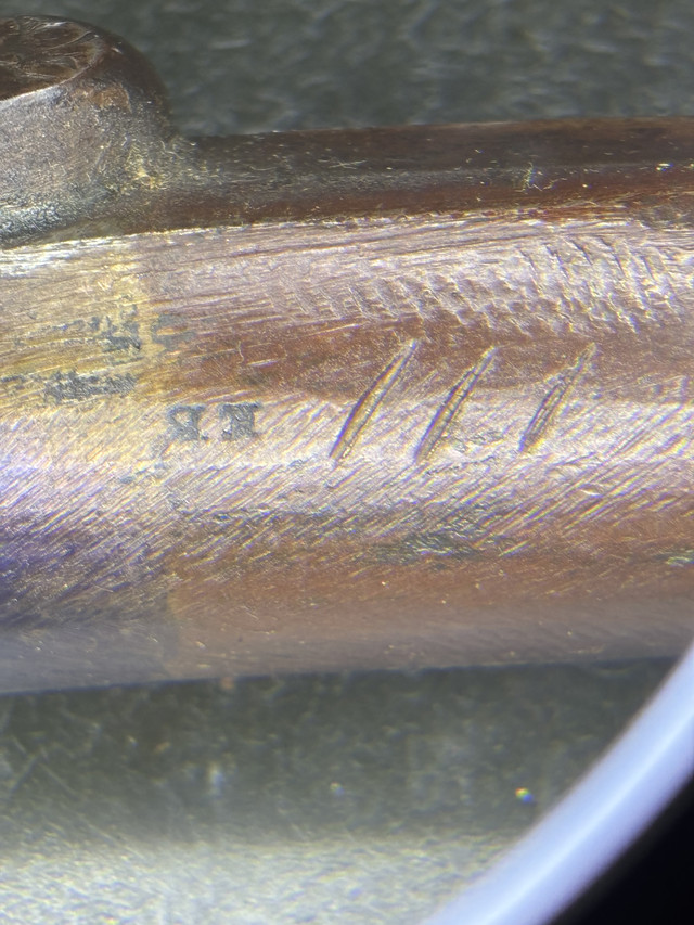 Does anyone recognize these makers marks? I received the rifle I bought at auction and took the barrel, lock and buttplate off. I found these slash marks on the barrel (along with what may be initials), on the bolt for the lock, in the lock plate pocket, the breech plug/tang and on the hammer. Nothing on the buttplate. It’s an 1850’s .51 cal New York style percussion rifle.