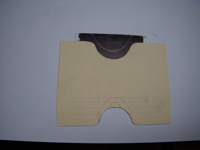 The cross sections have two purposes, they help us envision where we want our conturing to end up and they provide templates for us to make form scrapers if we like. For the scraper templates, we make a copy of our cross section and cut it out with an Exacto knife. I will show you the scrapers that I make out of junk hand saw blade when they are done.