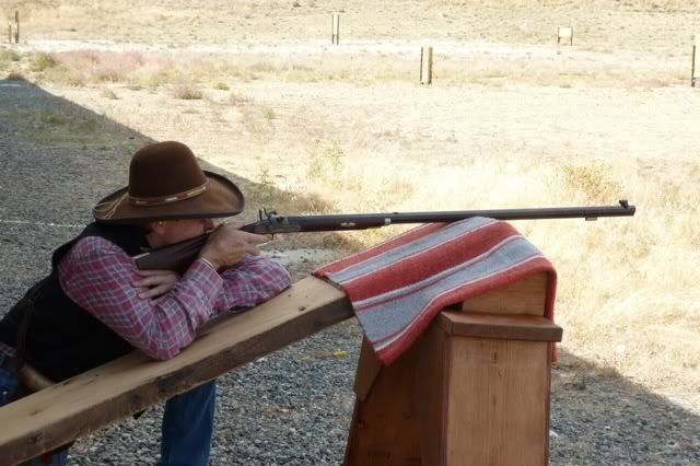 Temp loading tables supplied together with a fairly large tent to cover the scoring folks...BTW your fee includes a good feed after. Practice starts abt 8 a.m til 10 so you can get your 'group' shot. 10 one shot x cards are supplied and you enter your caliber and shooter # on each. Cards are white with a fine X. Remember to use cards not thin paper so they cut a nice round hole. Measurements are a given of course. straight string measure center of ball to .X. Pay best shot of each of the 10 cards, Used to be silver dollars of course that stopped.....