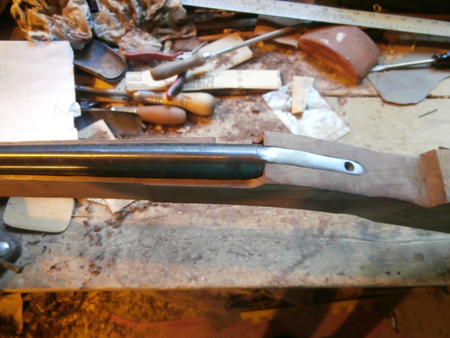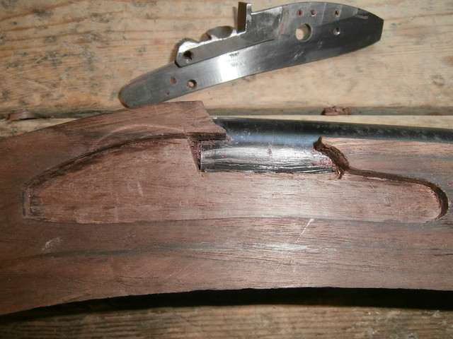 Started on the gun this past week. I inlet the barrel and tang by hand, narrowed the stock blank, and inlet the lock plate.
