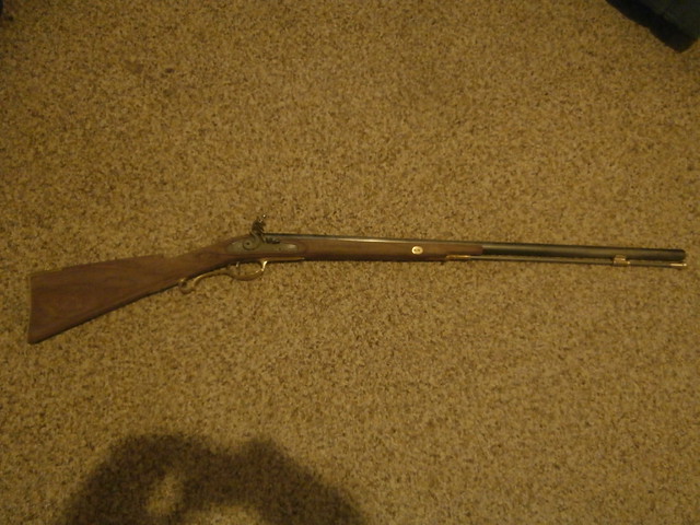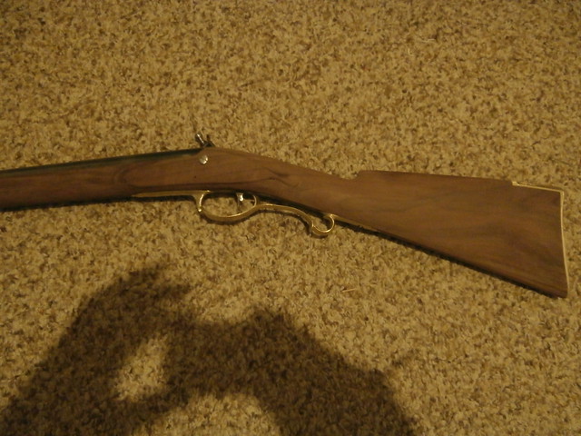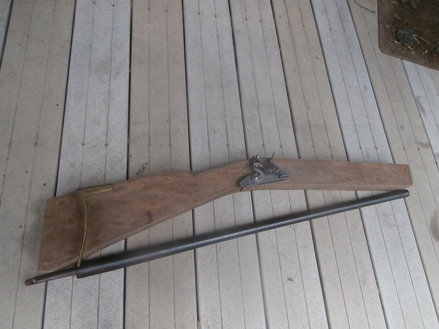 Had a few parts lying around, such as a walnut half stock, a brass butt plate, single trigger, and materials to make thimbles and a trigger plate. I decided to try and make a turkey/waterfowl gun for under $200 more in cash outlay. Bought a $30.00 12ga round tapered 30" barrel from a forum member. Also got a flintlock from "The Hawken Shop" for $102.00. I'll need to get a barrel rib, lower thimble, and trigger guard for under $68.00 to meet my goal.