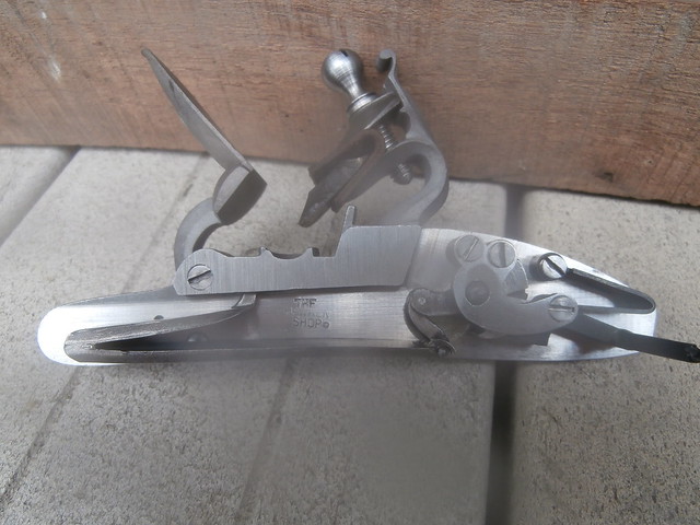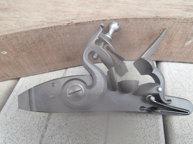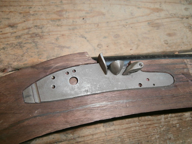 The lock was a pleasant surprise. It is fitted and polished and smooth as butter! Sparks great. Has a roller on the frizzen, and a fly on the tumbler. A very well made lock for that price. The only thing I will do to it, is stone the bottom of the frizzen and the top edge of the pan to get a little better fit. It is ok now, but I can see a little light between the pan and frizzen when closed.