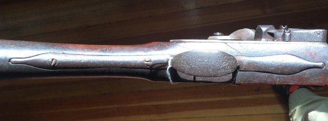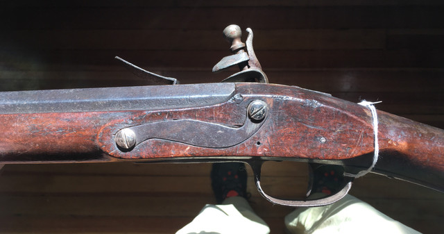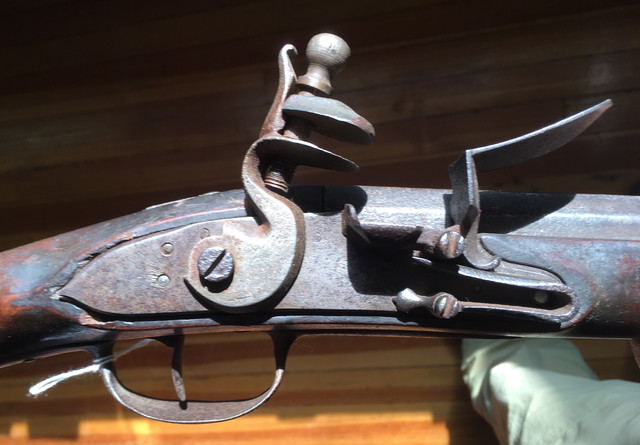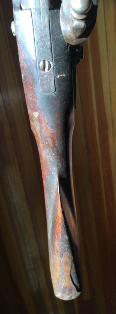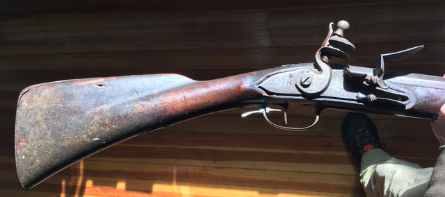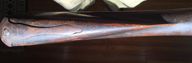 Now to turn the corner on this let me share pix of the original I will base the build on. An auction gun was listed as a French gun. Once that was in my mind I apparently went blind. Yes it was made with 100% French fusil ordinaire parts but it’s stocked in cherry and almost certainly an early New England gun. I have a partially built TRS fusil ordinaire and hate the stock architecture. Too much drop and I could not shoot it with a cheek weld. So I’ll use those parts. Sometimes procrastination pays off. I find the gun below elegant in its lines.