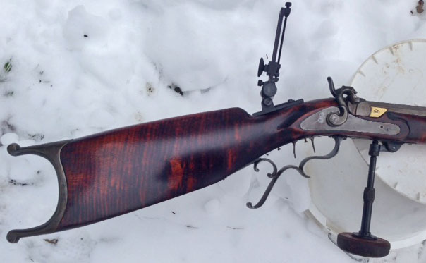 Eric, Taylor built this Hawken for a fellow from Alaska., The aperture aligned with the barrel sights, IIRCorectly,