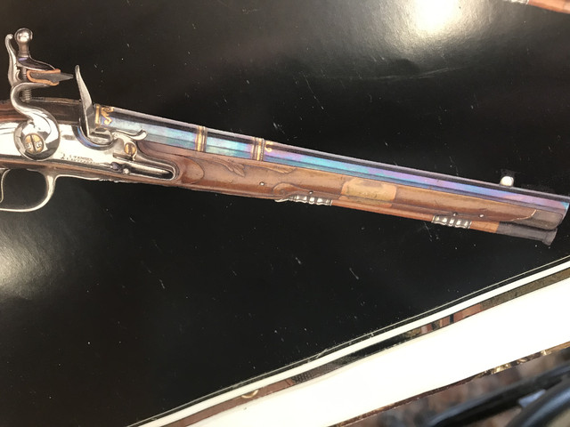 Fantastic.  The engraving, inlay, and wire work are superb.  I love mythical creatures and monsters.  They add such a classic touch.  Your rococo shell is the same design I intend to use on the officer's fusil.  I like the ones that roll in from a side.  Ed, one trick that I found worked for the heat bluing is letting the barrel cool a bit so you can handle it and then polish it with rottenstone and raw linsed oil.  The oil will darken the blue if the barrel is warm.  Clean it off and degrease, and then heat blue again and repeat the polish.  I think you will find that the color deepens and evens if you do that.  Great gun by one of the best!!