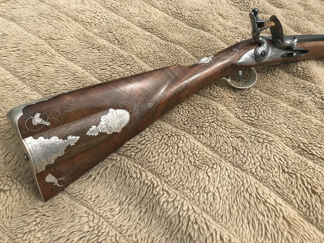 Another triumph !!!  I have only built one kit gun and it was the same Chambers English rifle......lovely lines and just a nice gun to carry.  Yours is magnificent with the silver hardware and your precise work.  Bravo Zulu !!!!!