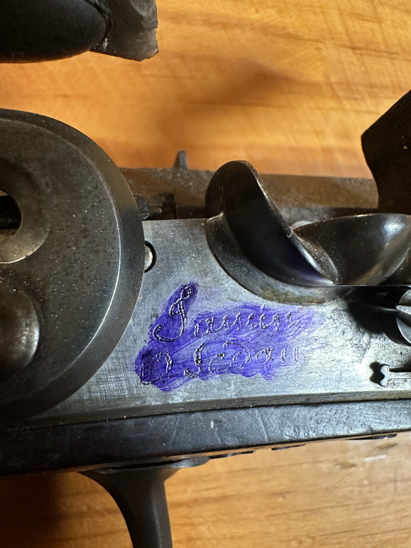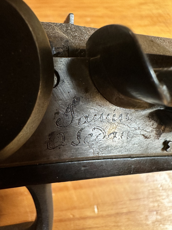 Lock: Nice late FL. Great condition. The signature is a puzzle. "D Sedan” makes sense. It’s a city in NE France. I think the signature starts with an “L”, or less likely a “T”, but probably not a “J”. Der Neue Støckel lists 45 gun makers in Sedan, none of which I can make fit.