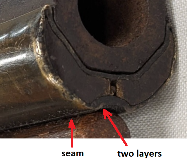 My (still limited) understanding on the joint is that it was a lap joint, which in this case must have been very carefully tapered on both sides so as to overlap without adding thickness. I've seen a photo of one that was more casually done, and the joint was visible, and positioned in the bottom of the barrel channel.