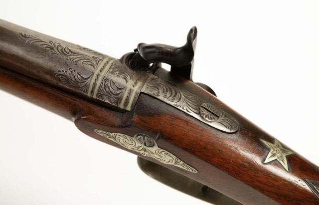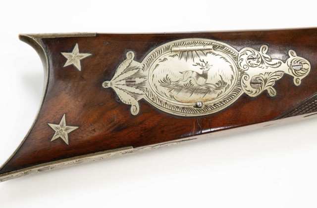 The butt architecture is similar to butt stocks from PA and other areas, but the detail work strongly suggests a New York origin. The cap box engraving looks like New York engraving, as do the barrel bands, heavily engraved breech, octagon-to-round barrel, shorter than normal grip area in the forestock, fowler-type front extension on guard... and particularly the single trigger. When you say you had a PA rifle "identical less the stars" do you mean it had all the other above New York features on it???
